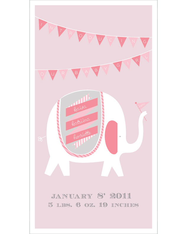 Happy Friday Everyone, while my little one sleeps I will take a little bit of time to share her cute birth announcement with you all. I am not sure if this is the final design yet as I am still playing with colours. I was thinking of adding hints of blue or possibly even brown, or I may even try a different design. Its such an important design that I want it to be just perfect for our little miss.
